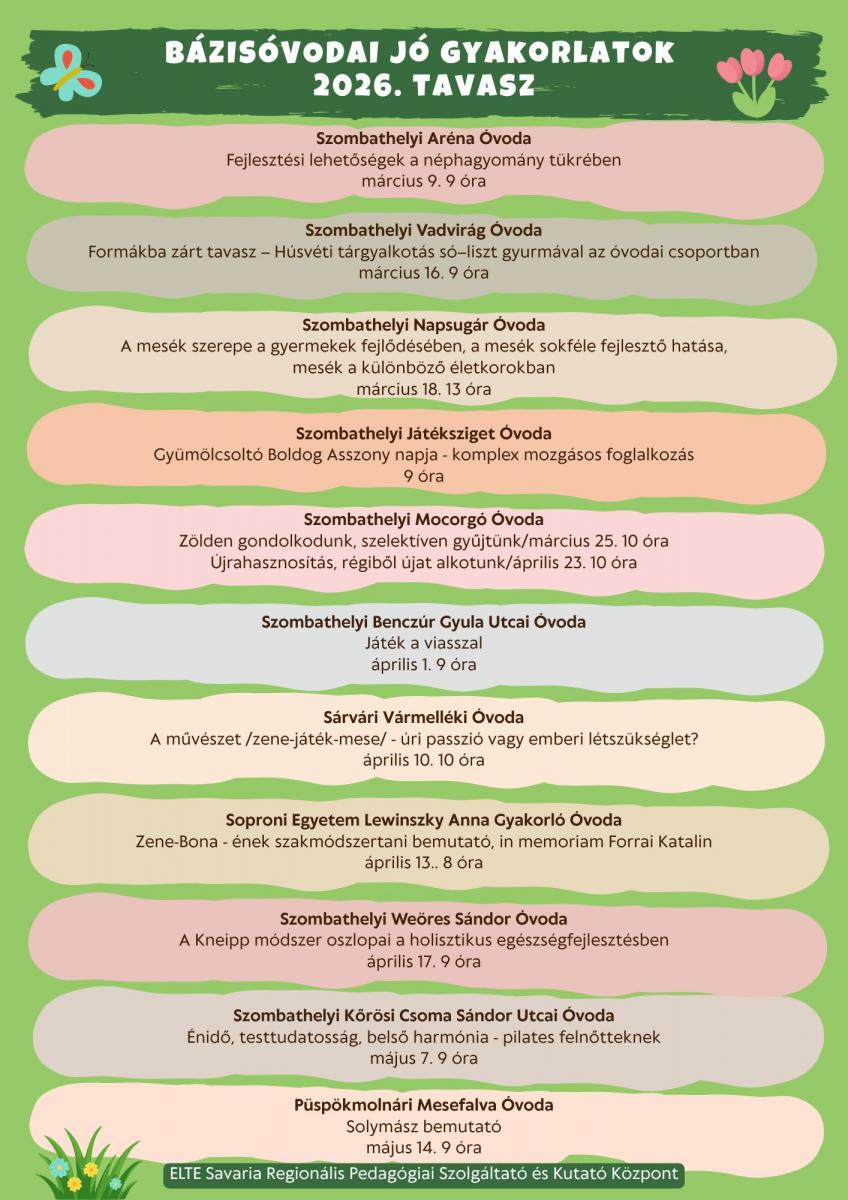 Bázisóvodai programkínálatunk idén tavasszal is számos lehetőséget kínál. A lista a mellékletben letölhető.